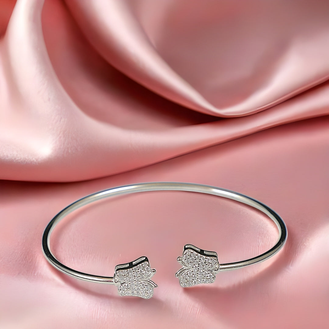 The Wings of Grace is a delicate 925 sterling silver butterfly bangle that captures the beauty of transformation and freedom. This handcrafted piece features an elegant butterfly motif that symbolizes growth, change, and natural beauty, making it perfect for the modern woman who values both meaningful design and refined elegance.